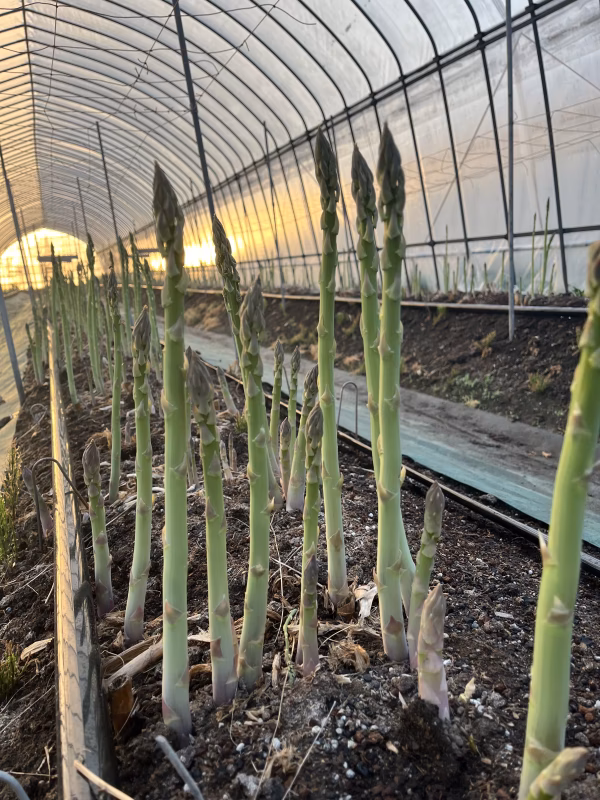 肥沃な大地で育ったアスパラガス。寒暖差と春までたっぷり蓄えた養分で、甘く、瑞々しく、美味しく育っています。