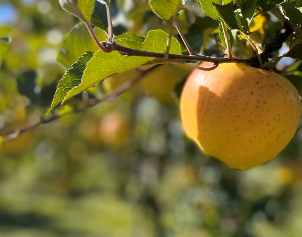 早生りんごの代表選手「つがる」を親に持ち山形の天香園(果樹苗木の専門店)が品種登録した山形生まれの黄色いリンゴ、それが「あまみつき」です。名前の由来は甘くて蜜入りが多く黄色いリンゴだから。高い糖度をほこりシャキシャキとした食感は誰にでもオススメ出来るリンゴです。強すぎない若干の酸味がコクのある味わいを生んでいます。りんご舎ではあまみつきのパフォーマンスを最大限に引き出すため、樹上完熟にて収穫、もちろんその後は急速冷蔵し品質の劣化を許しません。