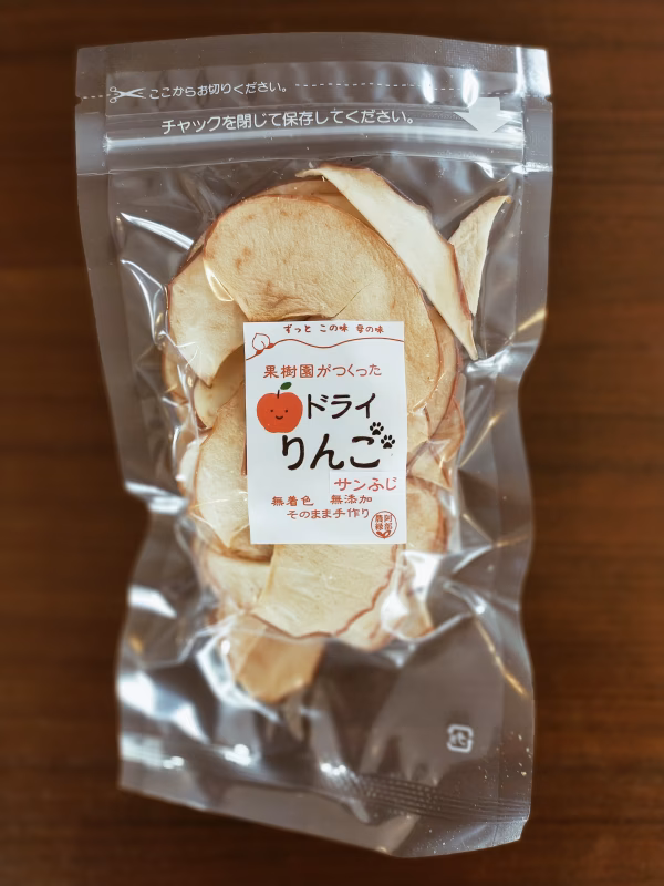 口に含んだとたんに感じる甘みと酸味がギュッと濃縮されたドライりんごです。 新鮮なりんごをひとつひとつ手作業で丁寧に乾燥させることで、風味や栄養素をしっかりと閉じ込めました。果樹への愛情と経験が、この一口ずつに詰まっています。その美味しさは、一度食べるとやみつきになること間違いありません。心と体にいい食べ物を求める方にお勧めしたい逸品です。おやつやお料理の飾り付けに最適です。