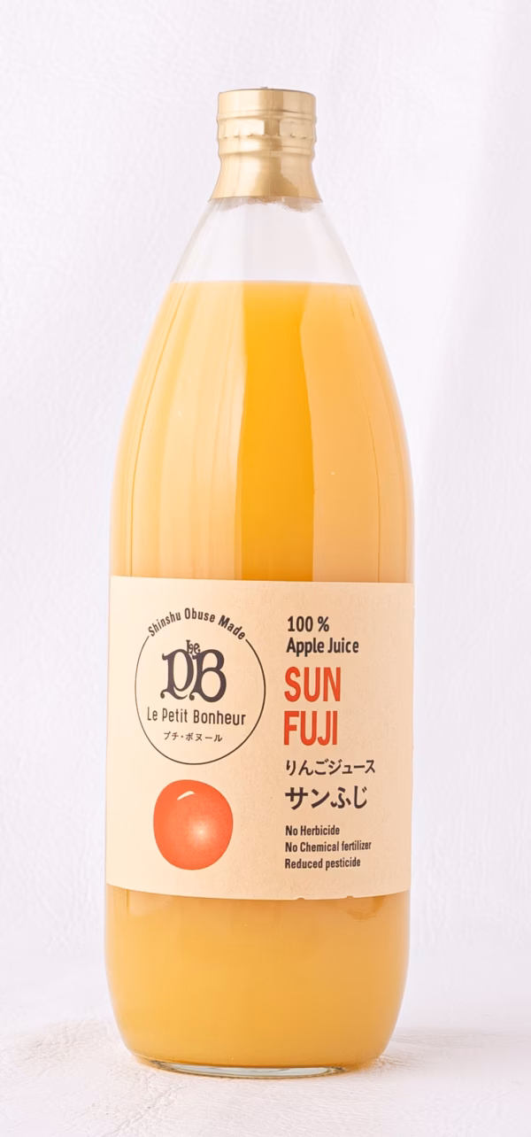 信州・小布施の川上農園で丁寧に育てたりんご「サンふじ」をジュースにしました。