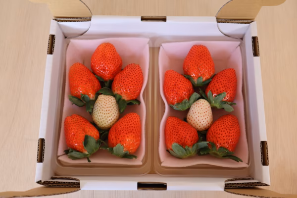 白いちご(ミルキーベリー)は1箱に2粒〜入れさせていただきます。こちらも濃厚な甘さでとても美味しいいちごです。