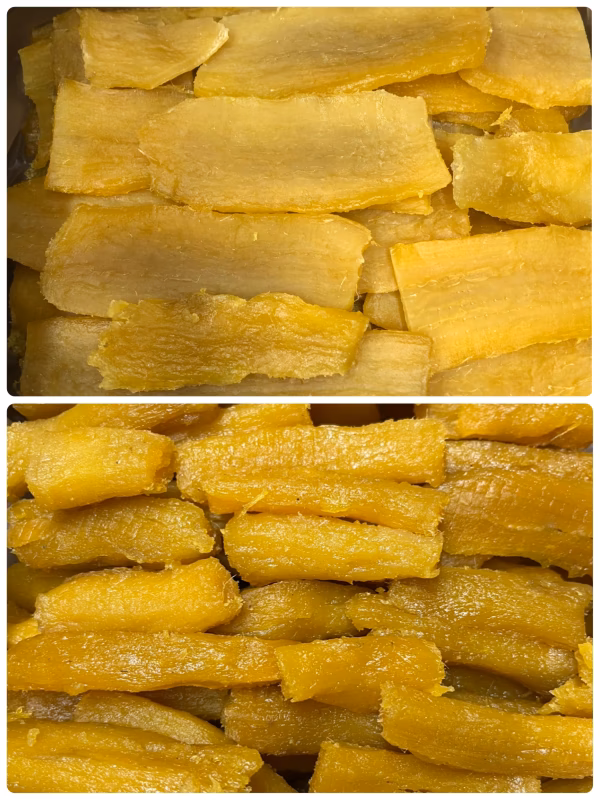 普通の紅はるかの商品には入れられない、色が悪い物や、固めや細かい干しです。