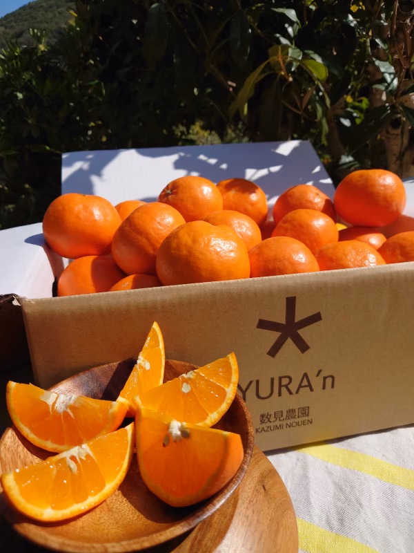 鮮やかな濃い朱色が特徴の柑橘。ここまで綺麗にするために、年末より1つずつ黒色の「サンテ」と呼ばれる袋をかけてじっくり仕上げます。甘みも酸味も高い品種で4月まで収穫を遅らせることで食べやすくなります。晩柑の中でもジューシーな柑橘になるため、そのままいただいても、しぼりたてジュースにしても絶品です。(種が多い品種です)