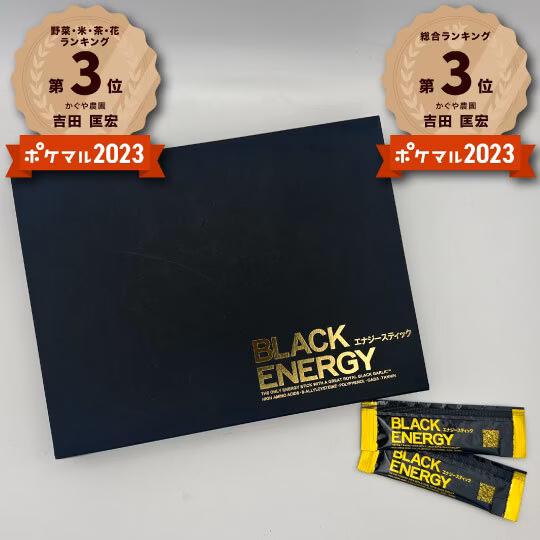 Amazonでも大人気!! かぐや農園の大ヒット商品「黒にんにく×マカ」の最強スティック「BLACK ENERGY」の30本入り(約30日分)です!! 大人気につき製造が追いつかず、品切れ状態が続いており、誠に申し訳ございませんでした。 (※現在販売中の製造ロットは、賞味期限が2029年の2月末となっております。) 【在庫復活記念セール!!】※数量限定で、半額セール!! <高級箱入りパッケージ> Amazon通常販売価格、1箱(30本入り)6,980円のところを↓ ・1箱:3,490円(なんと、半額!!) <お徳用袋入りパッケージ> 1袋(30本入り)5,980円のところを↓ ・1袋:2,990円(なんと、半額!!) ※数量限定の半額セールとなります。用意数が無くなり次第この価格は終了となりますので、ご了承ください。 ▼発送について 【メール便】全国一律 送料360円 <高級箱入りパッケージ>1箱(30本入り)~2箱(60本入り) <お得用袋入りパッケージ>1袋(30本入り)~3箱(90本入り) ※追跡ありのポスト投函になります。 ※全国どこでもOKです!! ▼BLACK ENERGYって? 農薬・化学肥料・除草剤を一切使用していないかぐや農園のプレミアム黒にんにくと、有機マカの超濃縮液を贅沢にブレンドし、国内老舗ブランドのはちみつやトクホのオリゴ糖などで味を整え、めちゃくちゃ美味し~く仕上げました☆ご自宅だけでなく、出張や外出先への持ち運びも便利なスティックタイプです☆ ▼食べ方は? 毎日の美容と健康のために、1日1本(5g)を目安に、そのままお召し上がりください☆かぐや農園のプレミアム黒にんにくペースト+マカ濃縮液のダブル配合により、アミノ酸18種類がめちゃくちゃ豊富ですので、吸収が良い空腹時(寝起きや就寝前など)にお召し上がりいただくのがオススメです☆(※あくまで食品ですので、1日に何本お召し上がりいただいても問題ありません☆) ▼「BLACK ENERGY」誕生秘話 弊社代表取締役である吉田匡宏が、高齢になる母の健康を気遣い、どうしても毎日1粒かぐや農園の黒にんにくを食べてもらいたいたかった。しかし、吉田の母は黒にんにくの味が苦手で、甘くてクセの無いかぐや農園のプレミアム黒にんにくですら、毎日続けるのが難しかった。 そんな中、「もっと美味しくてクセのない黒にんにく商品を開発しよう!」と思い立った吉田。国内のGMP認証工場と提携し、何度も何度も試作を重ね、毎日の健康だけではなく女性の美容など様々な効果を研究し、ついにたどり着いたのが、この「BLACK ENERGY」です☆ ▼商品コンセプト 「美味しく、毎日続けられる美容と健康」をテーマに開発いたしました。身体にイイものだけをギュッと濃縮し、毎日続けやすい美味しさに仕上げました☆「黒にんにくがちょっと苦手…。」という方にこそ、是非一度お試しいただきたい商品です☆ ▼パッケージについて <高級箱入りパッケージ>上質な厚手の黒色紙箱に、金の箔押しの超高級仕様!!大切な方の毎日の健康を想った贈り物にもピッタリな、高級パッケージです!! <お得用袋入りパッケージ>ジップ付き平袋に30本ずつ入った仕様です☆ご自分やご家族のご自宅用や、持ち運びに便利なパッケージです!! 【BLACK ENERGY】エナジースティック ●内容量:150g(5g×30本) ●原材料名:黒にんにくペースト(にんにく(青森県産))、マカエキス、はちみつ、オリゴ糖、干柿ペースト(柿(青森県産))、クエン酸、唐辛子抽出液 ●保存方法:常温保存 ※この製品は蜂蜜を使用しておりますので、1歳未満の乳児には与えないで下さい。 便利な定期購入もご用意予定ですが、さすがにこちらの超特別セール価格よりは高くなるかも知れませんw