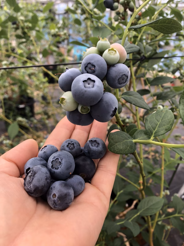 ▼栽培/生産方法、こだわり 養液点滴栽培と日々の管理で品質を保ち、農薬の使用は必要最低限に抑え、安心・安全なブルーベリーを栽培しています。