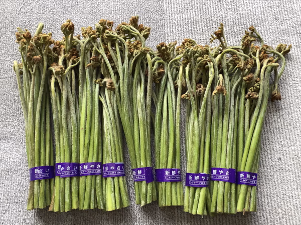 熊本の北部にある小岱山(しょうだいさん)という山ので採れた天然わらびです。  灰汁抜きをして、お味噌汁に入れたり、ポン酢をかけて食べると、とろとろの食感でおいしくいただけます。  天然ものですので、収穫時期が天候に左右されます。3月末から4月にかけて収穫の時期を迎えますので、発送もそのころになりますことをご了承ください。  昨年から、天然ワラビを多くの人に食べていただきたいと思い、 販売をはじめました。  全国から、注文をいただき、2日に一回は山に入りました🏔  1人での山歩き、猪に出会うこともあります。  ワンタッチの傘🌂を持っていますが、 やはり猪突猛進されたら、対応できるか不安です。  今のところ、イノシシの方から、退散してくれます。  今年も、皆様からの注文を楽しみに、ワラビ採り 頑張ります。٩( 'ω' )و