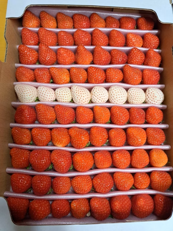 品種は「アスカルビー」または「恋みのり」、「ゆめのか」に1品種と白イチゴ(天使のイチゴ)の組合せになります。