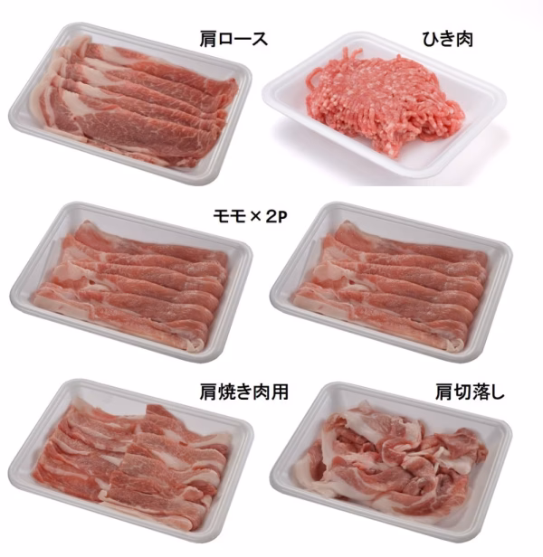 (肩ローススライス×1、モモスライス×2、肩焼き肉用×1、肩切落し×1、ひき肉×1)