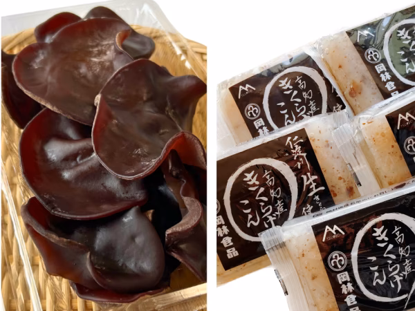 水と自然と空気が美味しい町、高知県吾川郡仁淀川町より、今年もフレッシュタイプの、(生)「黒あらげきくらげ」と、2022年高知県うまいもの大賞優秀賞受賞の「きくらげ入り蒟蒻」をお届けします。