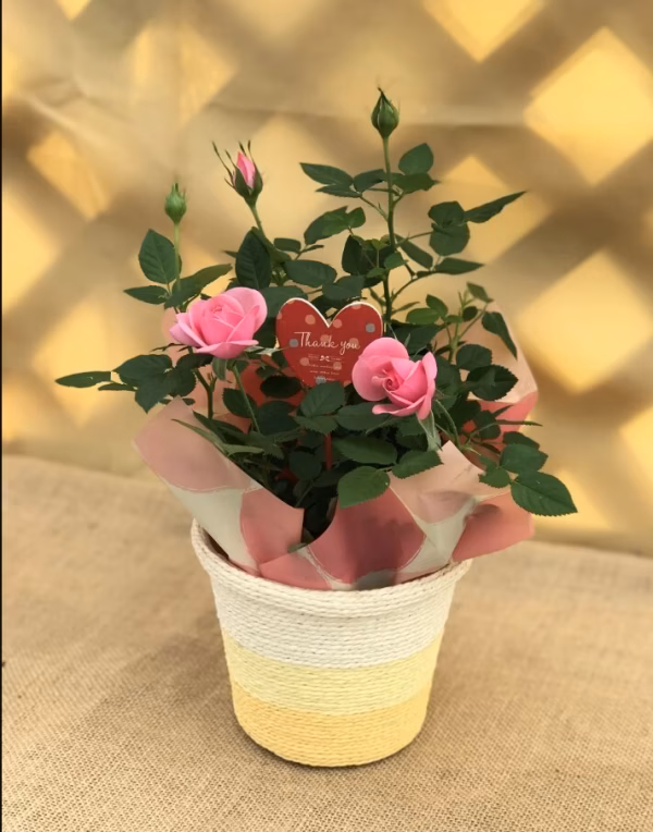 <商品概要> 中輪形のコルダーナローズ1色が植えてあります。ギフトなどの贈り物にも最適です。