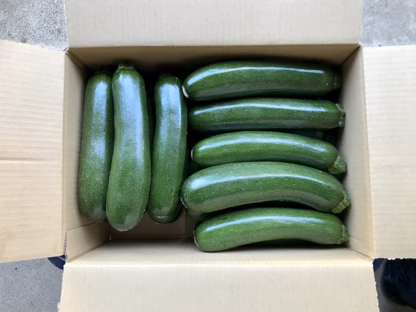 鹿児島産のズッキーニ注文を受けてから、収穫日に収穫した箱込み5キロ前後を畑の空気も収穫しながらAB品大中小混合箱詰めして、当日発送します^_^