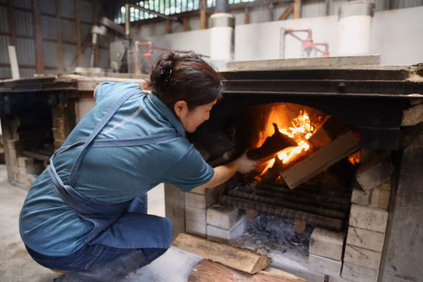 その時期折々の木材によって、少しずつ変わる燃え方を見つめて調整を加えます。