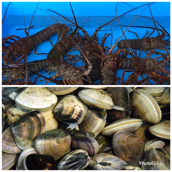 九十九里産活伊勢海老と、はまぐりのセットです!