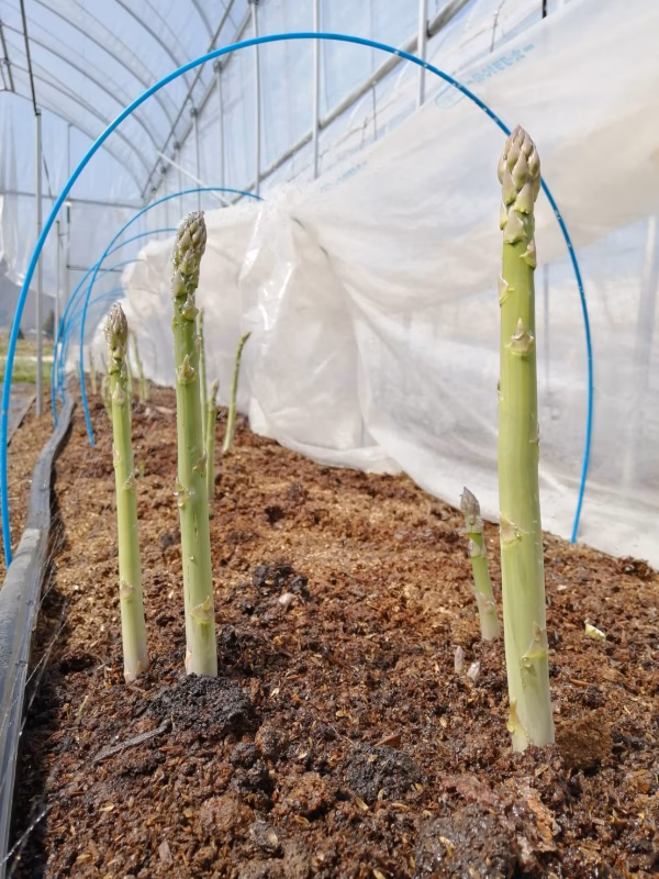 畑は、ハウスと露地があります。アスパラガスは温度管理、潅水管理が大切です。気温を見ながらハウスの開閉や潅水を実施するので、アスパラガスの様子を見ながら対応することは、子育てと似ているかもしれません。