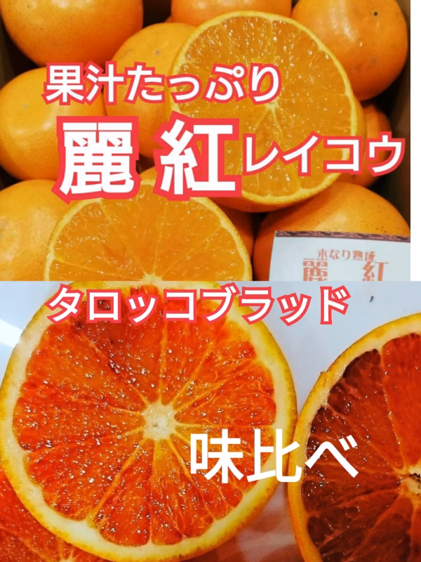 麗紅は、清美オレンジとアンコールオレンジを掛け合わせたものに、マーコットオレンジを交配し生まれたみかんです。果面はなめらかで美しく、外皮も薄く豊かな食感です、甘くて、果汁たっぷりをご賞味ください。