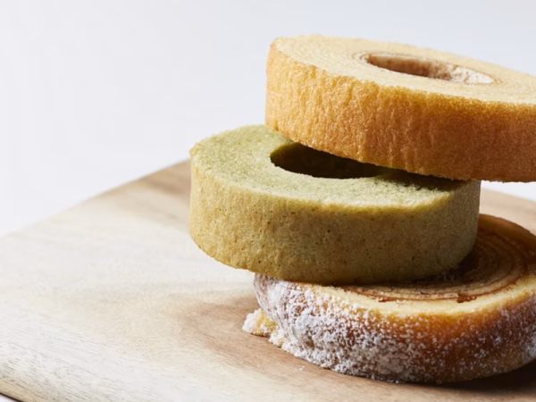 地元産のお米を”玄米そのまま”バームクーヘンを焼く都度、自社で製粉しています。お米本来の旨味、風味そして持ち味が生きたグルテンフリーの”生”玄米粉バームクーヘン8個セット。