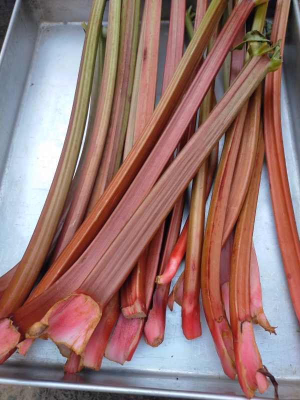 赤と緑の混ざったもの、色味の良くないものなど色々なルバーブが入ります。また、太さも極細~極太まで、長さも短いものから長いものまで様々です。虫アザや傷のあるものも入ります。収穫した日により色味などに違いがありますのでご了承ください。