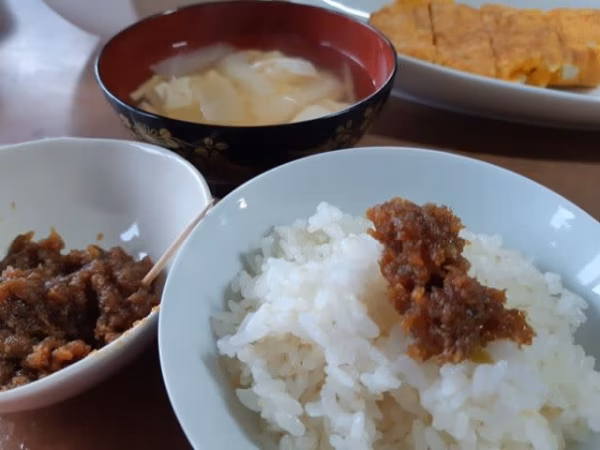 3. 春の香り 今だけ 正子さんのふきのとう2と梅干し2 手作り味噌でごはんを楽しむ