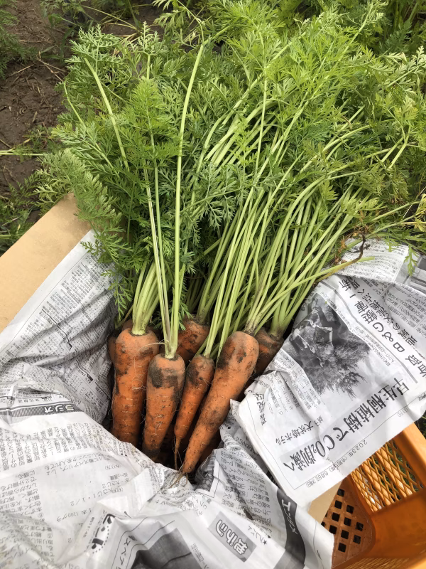 ▼商品概要 農薬・化学肥料不使用の有機人参のミニ葉付き人参です! サイズはかなり小さいです。 大きくなった人参は、 千葉県いすみ市の有機学校給食に出荷しています。 ▼栽培/生産方法、こだわり 妻が大の馬好きで、自宅で在来馬の与那国馬(名前は福丸)をストレスフリーな放牧型で飼っています。 福丸のフンから自家配合堆肥を作って、農薬化学肥料不使用で野菜を使っています。 ▼品種・味の特徴 向陽2号、彩誉、紅奏という品種を使っています。 ▼数量、分量の目安 葉つきミニ人参が約2kg〜入っています。 ※基本的には泥付きで出荷ですが、まれに洗ってある場合があります。 #無農薬 #無化学肥料 #オーガニック #有機野菜 #給食 #馬 #人参 #にんじん #有機人参  #キャロット #間引きにんじん #人参 #葉 #野菜 #ペットのおやつ #ペットフード #にんじん #ニンジン #小動物 #餌 #ウサギ #エサ #間引き #インコ #鳥 #人参の葉 #間引き菜