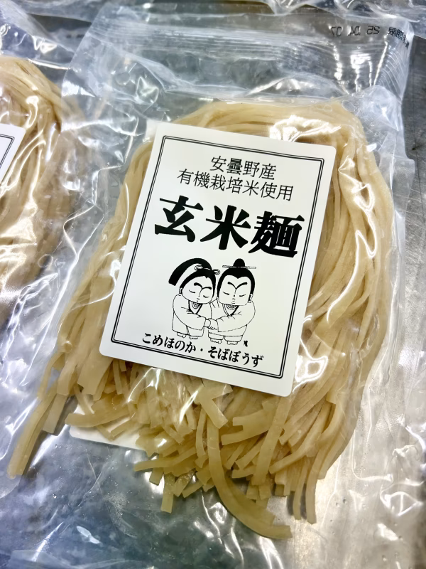 無農薬、無化学肥料栽培の有機JAS認定米を玄米まるごとで麺にしてあります。