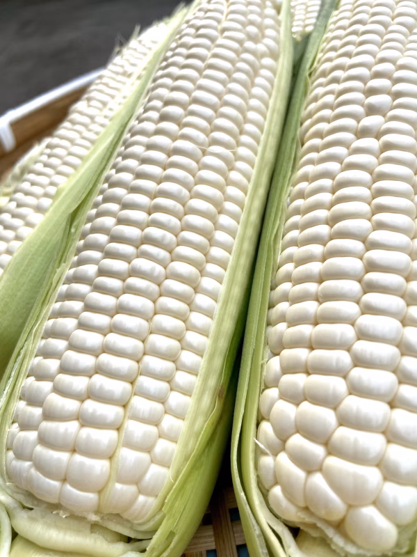 - とうもろこしは収穫直後から甘さが減っていきます。到着後はすみやかに調理して頂き、すぐに調理できない場合は皮付きのまま縦にして冷蔵庫で保管してください。