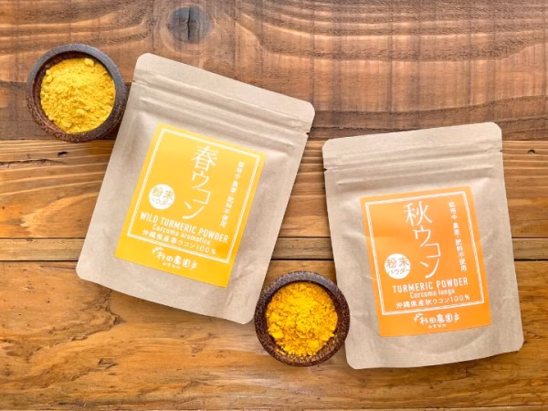 - 【春ウコンパウダー】 名称:春ウコンパウダー 原材料名:春ウコン 生産地:沖縄県糸満市 容器の種類:チャック付アルミ蒸着袋 商品サイズ (幅×奥行×高さ):12cm×2cm×15cm 保存方法:高温多湿・直射日光を避け常温で保存 内容量:45g(1袋) 賞味期限:製造日より2年(商品に記載) 販売者:杉田農園おきなわ 杉田和隆 製造者:オキナワパウダーフーズ株式会社 《栄養成分表示(3gあたり)》 エネルギー 10.5kcal たんぱく質 0.28g 脂質 0.14g 炭水化物 2.2g 食塩相当量 2.84mg ※数値は推定値です 【秋ウコンパウダー】 名称:秋ウコンパウダー 原材料名:秋ウコン 生産地:沖縄県糸満市 容器の種類:チャック付アルミ蒸着袋 商品サイズ (幅×奥行×高さ):12cm×2cm×15cm 保存方法:高温多湿・直射日光を避け常温で保存 内容量:45g(1袋) 賞味期限:製造日より2年(商品に記載) 販売者:杉田農園おきなわ 杉田和隆 製造者:オキナワパウダーフーズ株式会社 《栄養成分表示(3gあたり)》 エネルギー 10.34kcal たんぱく質 0.26g 脂質 0.12g 炭水化物 2.2g 食塩相当量 2.3mg ※数値は推定値です