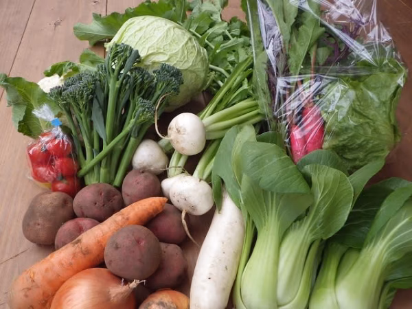 - レタス、ハンサムレタス(フリルレタス)、ジャガイモ(アンデスレッド)、ジャガイモ(ニシユタカ)、白菜、大根、赤大根、あやめっ娘大根、紅心大根、コールラビ、ビーツ(ゴルゴ)、スティックブロッコリーの中から7,8種類がセットに入ります。