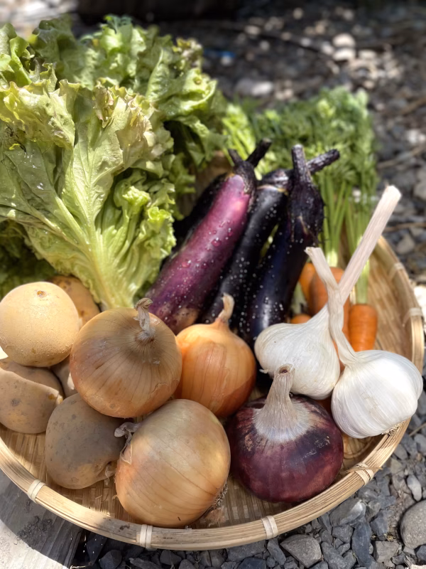 四季折々の旬の野菜を収穫当日に詰め合わせてお届けします。(一部貯蔵野菜を除く。玉ねぎ、じゃがいも等)