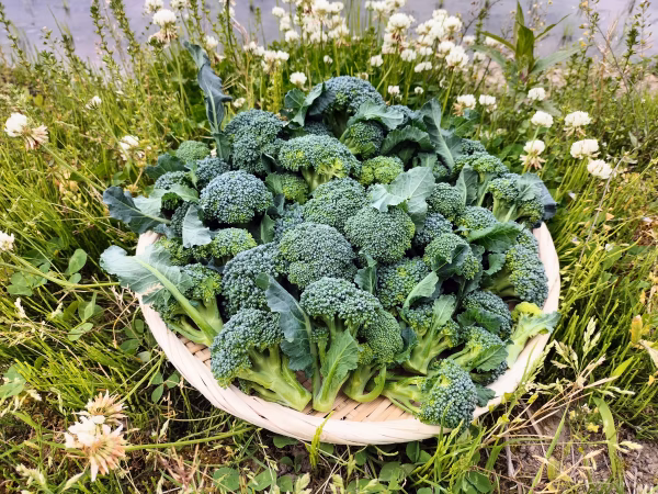 大きな親玉を収穫した後に、小さくて可愛いブロッコリーが生えてきます。沢山採らないといけないので数倍の労力が掛かりますが、自然の恵みを大事にして収穫しています。