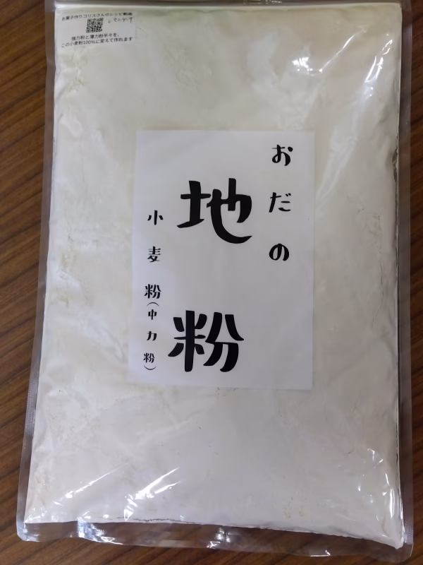 地元産小麦を使った小麦粉(中力粉)です。500g入りと800g入り。