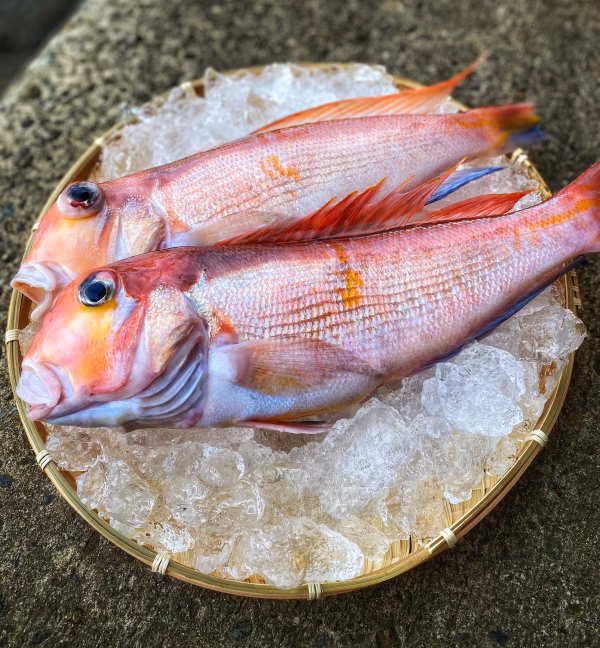 秋田県沖で獲れた天然甘鯛。旨みを含んだ上品な白身は高級食材として扱われています。甘鯛は表記通り「甘みのある魚」です。水分が多く柔らかいので、三枚おろしして塩をして一時間ほど寝かせ、水で洗い流してから料理をします。こうすると余分な水分が取れて、旨味が増します。他には昆布締めなどもとてもおいしいです。