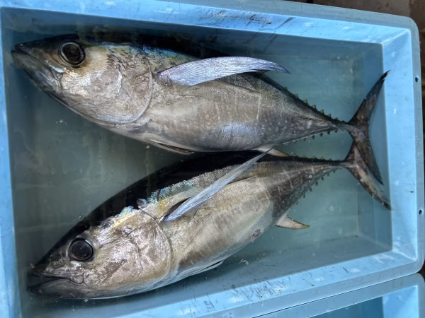 カツオ漁に混じって釣れる、大型のメバチマグロ、約8キロ〜10キロものを初夏の特別価格でご用意させて頂きます