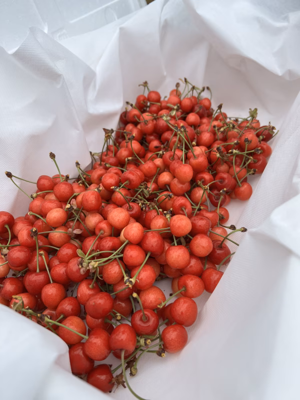 ☆令和六年度、山形県東根市さくらんぼ品評会にて最優秀賞一席を受賞した園地のさくらんぼです。 発送は6月12日以降に開始予定です。 今年もよろしくお願いします。 ▼商品概要  さくらんぼ日本一の産地、山形県、東根市産。1番人気の佐藤錦!4代目さくらんぼ農家です。食べては美味しいんですが、色が悪かったり、軽欠点(傷果、小ワレ果、双子果)などが入ります。サイズはL玉からM玉中心になります。2Lも混ざります。家庭用としてお楽しみ下さい。見た目は少し悪いですが味に自信あり!冬の間に剪定をして太陽の光をたっぷりあび、樹がのびのびと大きく育つようにしています。剪定は果実の出来栄えを左右する大切な作業です。美味しいさくらんぼを育てる為に弱い枝と強い枝のバランスを考え一本一本手抜きなしで剪定してまいりました。量より質で頑張ってます。 ▼品種・味の特徴   品種はさくらんぼの王様、佐藤錦です。一粒食べたら止まらなくなる甘味と酸味の絶妙なバランスで初夏の果実として大人気です。 ▼数量、分量の目安 佐藤錦 1キロ 訳あり品 ▼注文に際しての注意点(配送方法や納期指定など) 旬の果物ですので、収穫量が天候により左右されます。収穫時期は大変忙しく、細々とした対応ができなくなります。申し訳ありませんが日にち指定は受付できません。鮮度を保つためにクール便にてお届け致しますので、到着後はなるべく早く召し上がりください。保存は冷蔵庫にてお願いします。