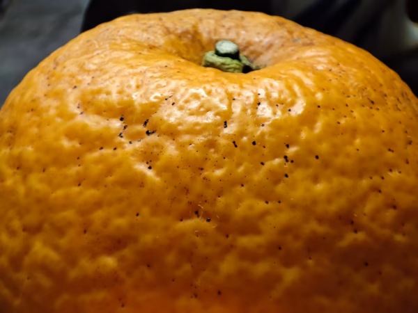樹上完熟の、収穫したての新甘夏です。通常この時期まで木に成らせておくと、水分が無くなりスカスカ、パサパサの果実になってしまいます。