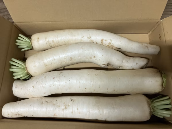 4. 訳あり大根 生だと辛い、炊くとマイルド味 無農薬有機肥料除草剤不使用7、8本