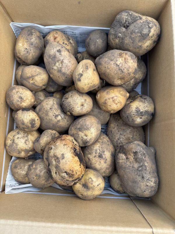 いつも当農園を応援いただき、誠にありがとうございます。 皆様からの励ましのメッセージや、優しいお声かけ、応援のレビュー、本当に本当に励みになっております。 本当にありがとうございます。 今年も新じゃがの季節がやってまいりました。 今年もゴロゴロと立派なお芋が育ちました。 7月上旬から収穫して順次発送いたします。 農薬不使用、化学肥料不使用で丁寧に育てた新じゃがです。 箱いっぱいにお入れしてお届けいたします。 大きさによりますが約35個入ります。 品種は、キタアカリになります。こちらもホクホクとした粉質品種です。 男爵と似た食感ですが、男爵よりもとろけて煮崩れしにくいので、肉じゃがやカレーなど煮物に向いています。 黄色みがあり、甘みもあって美味しい品種です。 常温保存可能です。 そのまま風通しのいいところ日陰においておけば、皮に厚みが出て普通のジャガイモになります。 鮮度を保つため、掘り立て土付きのままお送りいたします。 自然豊かな大地で、通年を通して農薬を使用せず、安心して食べて頂けるように丹精込めていろんな野菜を育てております。 今後もお気軽にお問い合わせください。 どうぞよろしくお願いいたします。 ■目視で選別を行っておりますが、どうしても人間の作業となる為、非常に細かい生傷などは見逃す場合がございます。じゃがいもは肥えてくると、中にすがはいることがあります。 中心空洞症と呼ばれる現象です。 気象や栽培環境の変化などにより、いもが急激に大きく生育することで中に空洞ができてしまったものです。空洞部分を取り除いてお召し上がりください。 また、農薬不使用の野菜には虫がついていたり、多少の虫食いや傷の部分もございます。 その為、多少の不良はどうかご理解頂けましたら幸いです。 綺麗な野菜をご購入されたい方は、ご購入をお控えいただけますと私たちもありがたいです。 大変申し上げにくいのですが、 包装資材は創業以来、環境負荷に対する配慮を最優先し、極力リサイクル利用させて頂いております。 大変失礼な対応となり、大変申し訳ございませんが、ご理解頂けますと幸いに存じます。 #農薬不使用 #採れたてをお届け #土付き新鮮 #新じゃが #北あかり #キタアカリ #きたあかり #ジャガイモ #ホクホク よろしくお願い致します。