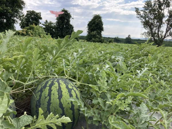 山形県村山市北西部は昼夜の寒暖差が大きいため、スイカの甘味をより一層高めます。近年の干ばつ対策として定期的な水やり、ツル・玉の管理をしっかり愛情込めて行っています。