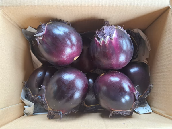 小森茄子において、令和7年1月には小森なす保存会として、長野県「信州の伝統野菜」伝承地認定野菜になりました。 長野県長野市篠ノ井の東福寺、小森地区を中心として明治時代か地域に伝わる「小森茄子」です。 つやつやの濃紫紺色をした実です。 みっしりと身がつまった緻密な果肉は水分をたっぷりと含んでジューシーさと、とろけるような食感と甘みが特長です。 オススメの食べ方は、シンプルになすの旨みを味わう、なすステーキやしぎ焼き、水なすのように浅漬けにしてもおいしいです。 大きさは1個300~250gとなります。 栽培には、化学肥料、農薬、除草剤は一切仕様しておりまん。(※有機ボカシ肥料を使用しています) 包装方法は空きダンボールにて発送させていただきます。