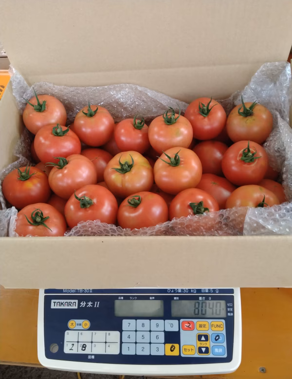 写真のように栽培中にキズがついたり変形したりした規格外のトマトです。 サイズはバラバラですが、程度の良い物を選んで入れますので正規品と味は変わらないと思います。 8kg規格外品は、家族の人数が多い方、ご近所に配られる方、健康の為に毎日欠かさずトマトを食べられる方、バーベキューやパーティーをご予定の方、トマトソースをたくさん作られる方、トマトマニアの方に個人的に販売していた物です。 近所の道の駅で販売している価格と同価格の1kgあたり250円で販売します。