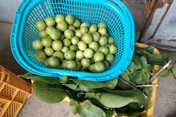 ノチーノとはイタリア北部エミリア・ロマーニャ州名産の濃褐色のくるみのリキュール。リモンチェッロ、バルサミコ酢なども作られる地なので果実を漬ける文化があるのでしょう。 6月24日はサンジョバンニ(洗礼者ヨハネ)の聖人の日を境に青いクルミを使ったリキュールを仕込む伝統があります。 作り方は多少個人差がありますが、青いクルミをアルコール度数90%以上のスピリタスと氷砂糖で漬け、仕上げにレモン、シナモン、クローブ、バニラビーンズ、カルダモン、ニッケイ、コーヒーチェリーなどでさらに漬けて風味高くしていきます。 アルコールや炭酸で割って飲むのがスタンダードですが、バニラアイスなどにかけて食べるのが美味過ぎてびっくりすると思います。コーヒーに入れてコーヒーリキュールみたいな感じもできます。バルサミコ酢のようにサラダドレッシングにアレンジも出来るそうです。 どれにしてもアルコール度数高いので、大人の嗜みです。 日本にも近年伝わってノチーノを作る人もいますがカシグルミの青いクルミを手に入れる事は困難です。 それに使われるクルミは、カシグルミの殻がまだ形成される前のものを使います。オニグルミでもできますが、アクがオニグルミは強いのでカシグルミをオススメしていますが、カシグルミは東北にはほとんど無く、長野県がカシグルミ生産の8割を占めていますし、もちろんお菓子などに使われるナッツなカシグルミとして使われますので、青いうちのカシグルミを収穫することはありません。 作り方は、市販のスピリタスが500mlしか見かけないので、青いクルミ500gをベースにし、カシグルミと一緒に同梱します。スパイスは比較的購入しやすいものをベースにします。 イタリアでは12月のクリスマスの頃に飲むことが多いようですが、半年漬けただけだとかなりキツいので3年以上寝かせることをオススメしています。 普通の果実酒とはまったく雰囲気は異なりますし、途中でクルミを取り除いたり、手間も多いですが、3年待つだけの価値のある感動を味わえます。 カシグルミが殻を形成する前の段階までなので、販売期間も極めて短いです。 こんな物好きはいないなと思いつつ出品いたします。 アレンジもしたい方もいると思いますので、500gと1kgの2種類を出品します。販売時期が短いこともあり、お届けの日にち指定はできません。常温便で発送しますが、すぐに仕込まない時は冷蔵庫で保管してください。 色味が似てるので青梅と間違えて注文されませんようにお願いします。