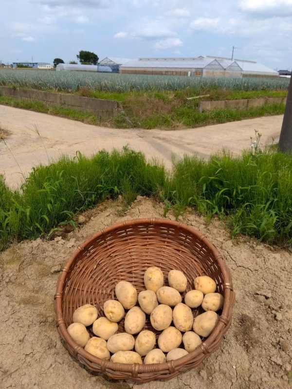 ▼商品概要  埼玉県越谷市産、農地所有適格法人「(有)楽農三恵園」が栽培し、6月に収穫したばかりの新じゃがいもです!  収穫、選別は機械を用いず、人の手で行っており、虫や傷み、青みなども細かくチェックしております。  農薬、化成肥料の使用は最低限に抑えました。  蒸した時のホクホク感としっとり感が合わさる、きたあかり特有の絶妙な味わいをお楽しみください。  じゃがバター・ポテトサラダがお勧めです。 ※火が通りやすい為、軽めに蒸してお召し上がりください。 ▼数量、分量の目安  Lサイズ 3kg (約 9~13個)  Lサイズ 6kg (約22~26個)  ※6kgのご注文は割安価格になっています。 ▼注文に際しての注意事項 ・大きさには多少のばらつきがある場合がございます。 ・皮が薄いため、収穫時や輸送時に皮が剝がれてしまう場合がございますが、味に影響はございません。