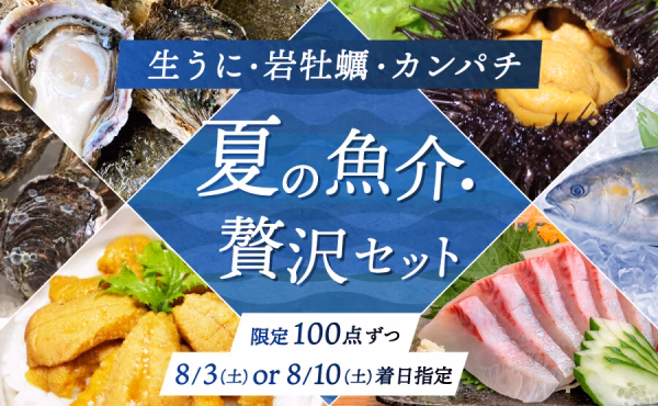 夏に食べて欲しい魚介類!今まさに旬を迎えた、生うに、岩牡蠣、カンパチを詰め合わせにしてお届けします。