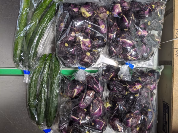 丸ナス2kg、キュウリ450gの詰め合わせセットです。 丸ナスは南陽市特産物の薄皮丸ナスです。なす漬けの原料に最適です。 キュウリは浅漬けやモロキュウにおすすめです。