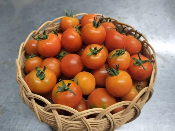 ジューシーで甘みが強いばかりでなく、程よい酸味とのバランスが絶妙な固定種のミニトマトです。