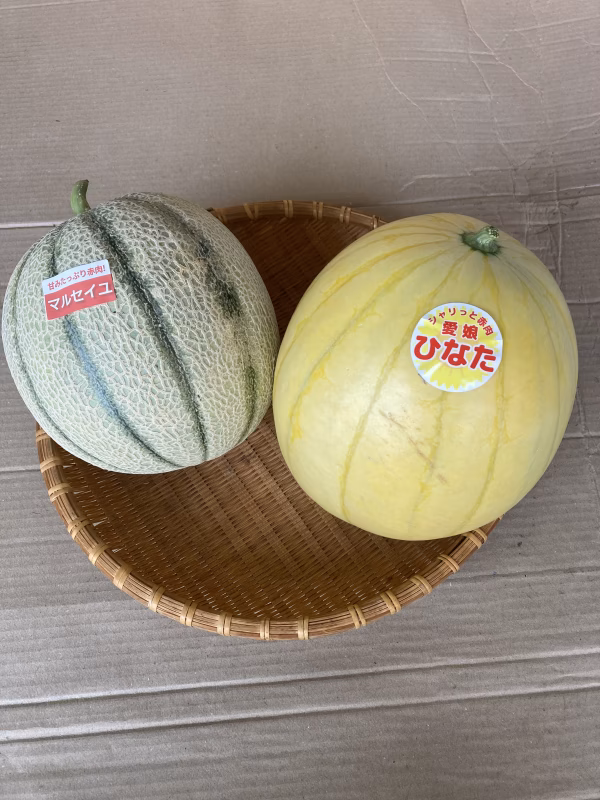 この中から小玉スイカとメロンの各1個ずつのセットです。収穫時期で品種が変わります。