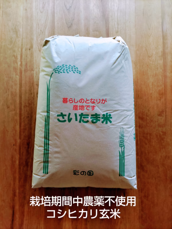 【栽培期間中農薬不使用コシヒカリ】です。