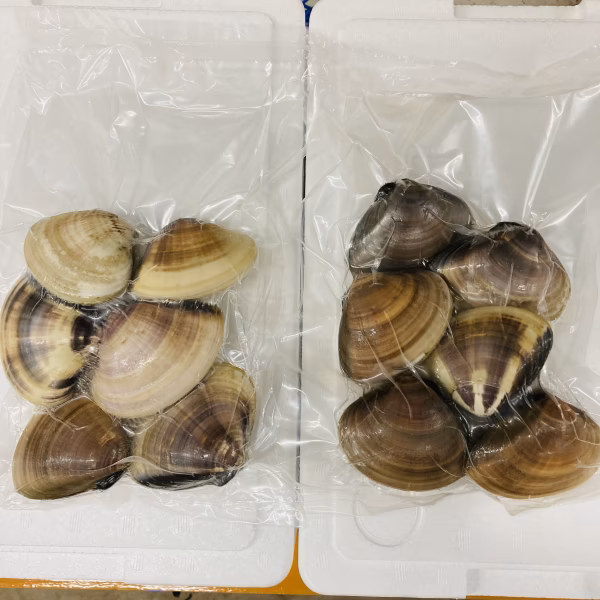 ※はまぐりが大きくなるにつれて、小さなカニが入っている事があります。はまぐりが生きている状態では取り除く事が不可でしたので、そのまま冷凍してあります。食べられません。 生冷凍したはまぐりです! 真空パックにしてありますので長期保存出来ます。 使いやすい500gずつパックしてあります。 砂抜き済みですのですぐ使えます! ⭐︎味噌汁 冷凍はまぐりの場合、急激な温度変化により口が開きますので、味噌汁を作る場合には熱湯に入れて下さい。 ⭐︎酒蒸し フライパンを熱してからはまぐり、酒を素早く入れると口が開きやすくなります。 口が開かない場合には強引に開けてください。蝶番部分が壊れているだけなので食べれます。 電子レンジで酒蒸しする場合ラップはふわっとかけて下さい。 貝類は、冷凍することによりプリプリの食感は失われますが、旨味成分が凝縮します。 内容量約490〜510g前後