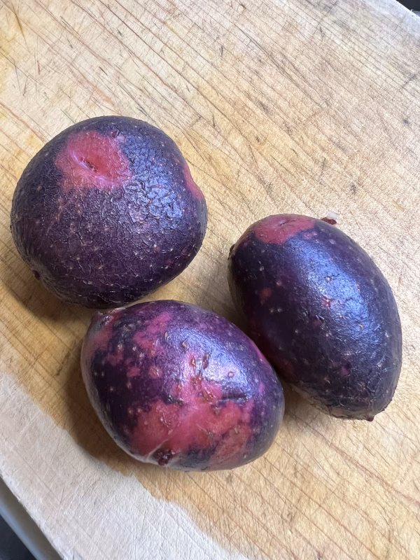 ▼商品概要 特徴的なのは表皮の色で、赤い地色に赤褐色の斑が入り、なんとも楽しいじゃがいも、約1.5kg程。(おまけ付き) ▼品種・味の特徴 グランドペチカ 一皮むけば中は濃い黄色で、加熱するとホクホクする粉質が多い肉質で香りも良く美味しいじゃが芋 煮物系や揚げ物、焼きものに適しています。  皮つきのままホイル焼きなどにしてジャガバターにすれば皮目が活かせます。 ▼数量、分量の目安 約1.5kgほど。 ▼栽培/生産方法、こだわり 土作りからこだわり、有機肥料のみ使用。 完全無農薬栽培。 ▼注文に際しての注意点(配送方法や納期指定など) 畑から収穫したままを袋詰め。 土汚れなど気になる方は購入をお控えください。