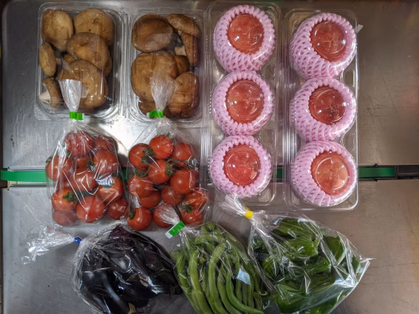 • インゲン、シイタケ、ナス、トマト、ピーマン、桃