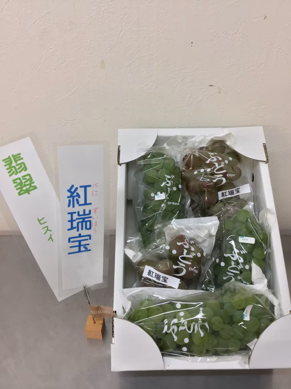 ▼自己紹介 大阪柏原市で夫婦二人三脚で、丹精込めて育てています。 ▼商品概要 紅瑞宝(ベニズイホウ)は赤系、翡翠(ヒスイ)は黄緑系と、いろんなぶどうを食べたい方にオススメ。 紅瑞宝は実が紅く、果肉は瑞々しく、宝石の名が相応しい、当園1番人気。一度食べたら止まらない中毒性があり、あっという間になくなります。 翡翠は少し小粒ながらも爽やかな甘味と香りが特徴。当園では栽培面積が狭く、今までは店頭販売のみの取扱いでしたが、たくさんの方にご賞味いただきたいとの思いから、令和6年度に初めてマルシェに出品しました。 ▼数量、分量の目安 3〜4房 ▼栽培/生産方法、こだわり ハウス栽培 ▼注文に際しての注意点(配送方法や納期指定など) 特に紅瑞宝は完熟状態のため、配送時に粒がとれる恐れがあります。梱包前は全て房についた状態で配送しますので、ご理解・ご了承いただきますようお願いします。 また、ぶどうの皮には栄養が詰まっていることから、甘い中身と一緒にお召し上がりになる方もおられます。私たちぶどう農家もそのまま食べることが多いです。しかし、紅瑞宝の皮は渋みや苦味があることから、食べる際にはご注意いただきますようお願いします。 最後に、農業資材の値段高騰につき、販売価格に転嫁しています。引き続き品質向上に努めますので、ご理解のほど宜しくお願いします。